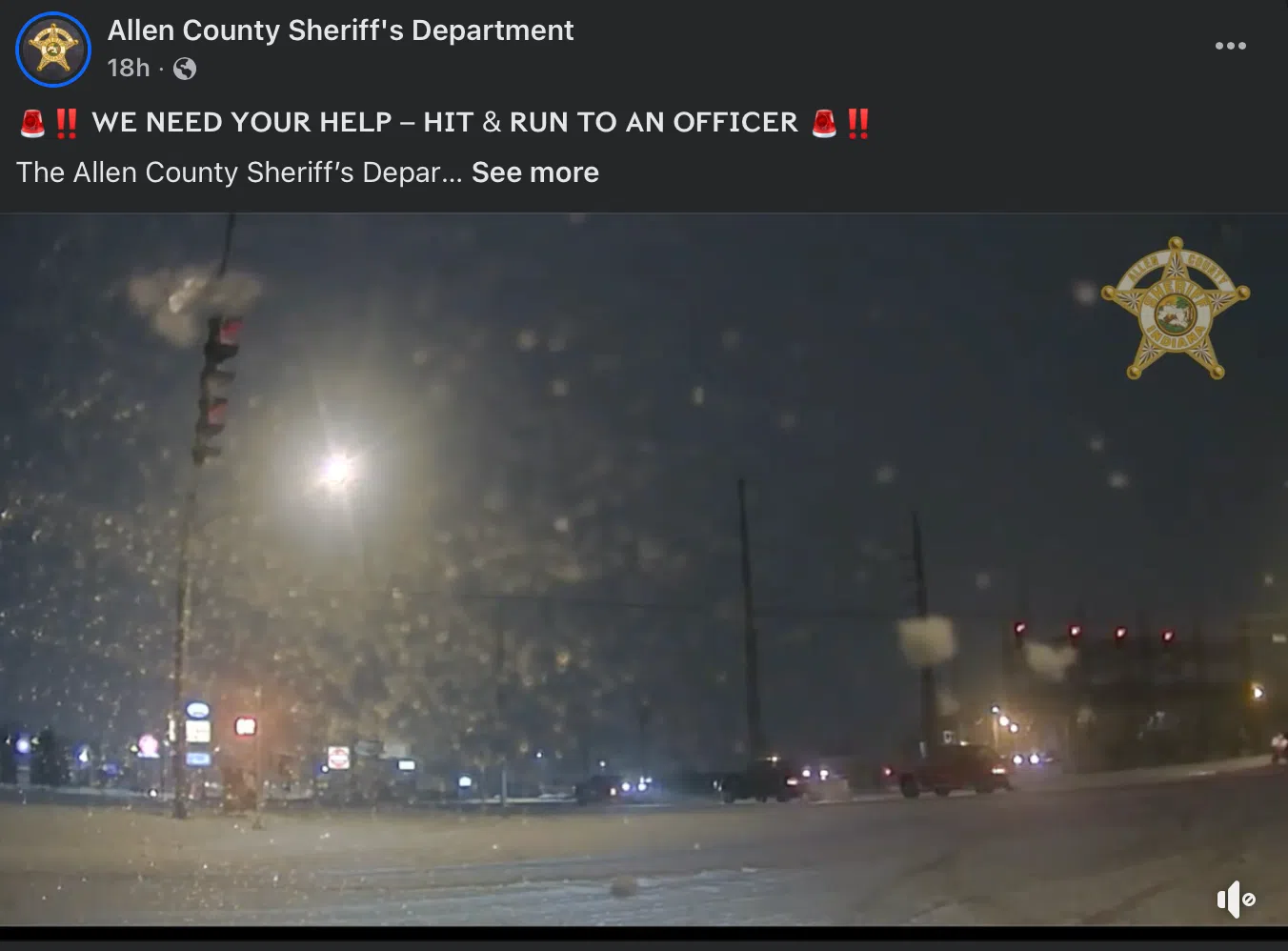 The Allen County Sheriff’s Department is asking for the public’s help in identifying a suspect involved in a hit-and-run accident to one of our officers.