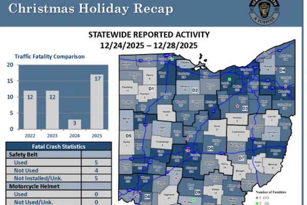 Ohio State Highway Patrol releases enforcement statistics for Christmas holiday